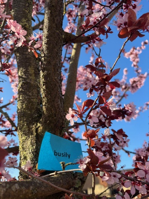 An Easter egg hunt-style competition was held where over 2000 printed words were hidden around site. Students had to collect these words and collate them into a story.