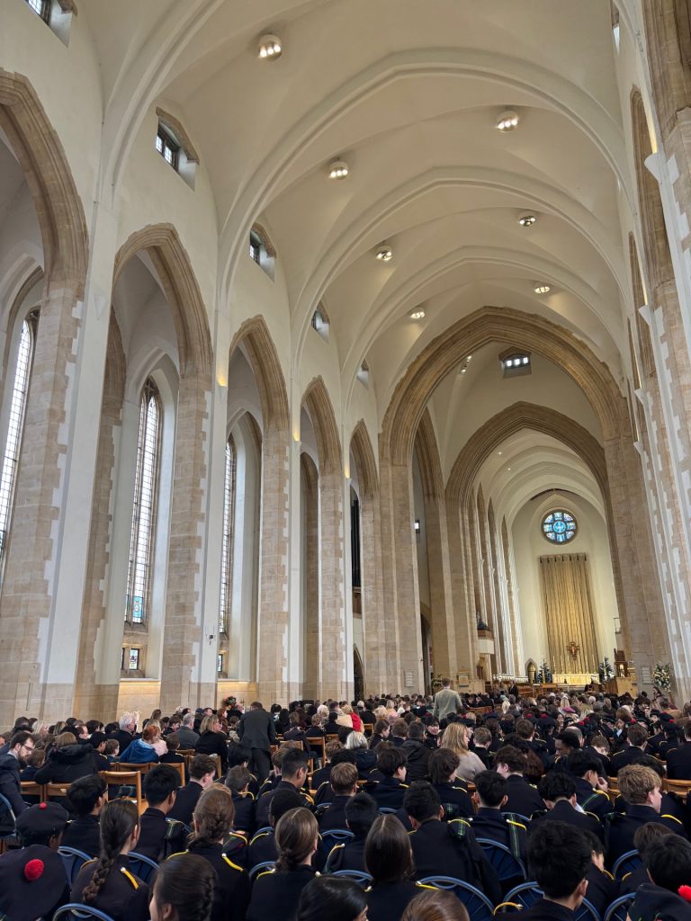 The atmosphere was uplifting and bright, the service including hymns and the anthem both sung by the choir. The Head Girl and Boy read from the first book of Samuel. Through the service many prayers were said, the pipe lament was played and the commemoration, as well as readings featuring Reverend Graham Wright, Very Reverend Bob Cooper and a welcome by the Reverend Canon Rachel Young.